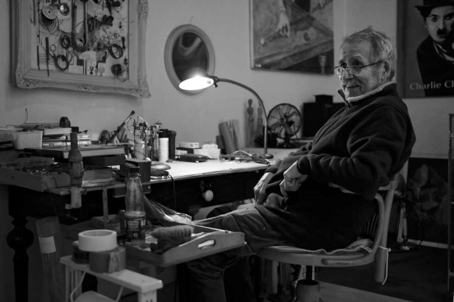 Präzessionskünstler Dieter Breuer, leidenschaftlicher Handwerker, Maler und Sammler für ästhetische, stilvolle und hochwertige Kostbarkeiten, trifft auf das Auge der Leica M9 und der Leica Monochrom (ISO ab 3200, Objektive 28mm/2,0 + 50mm/1,4 + 50mm/2,0).