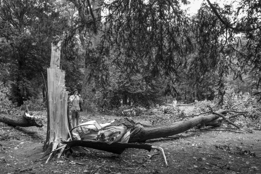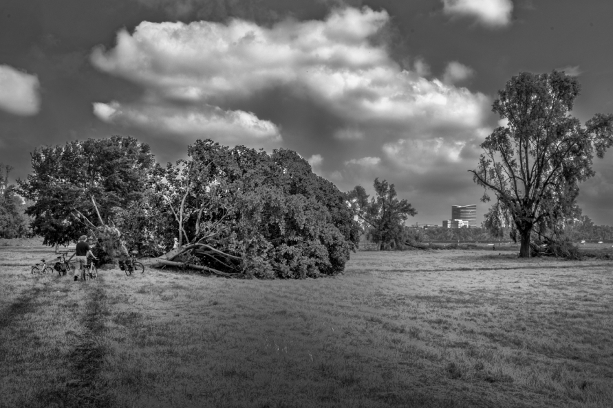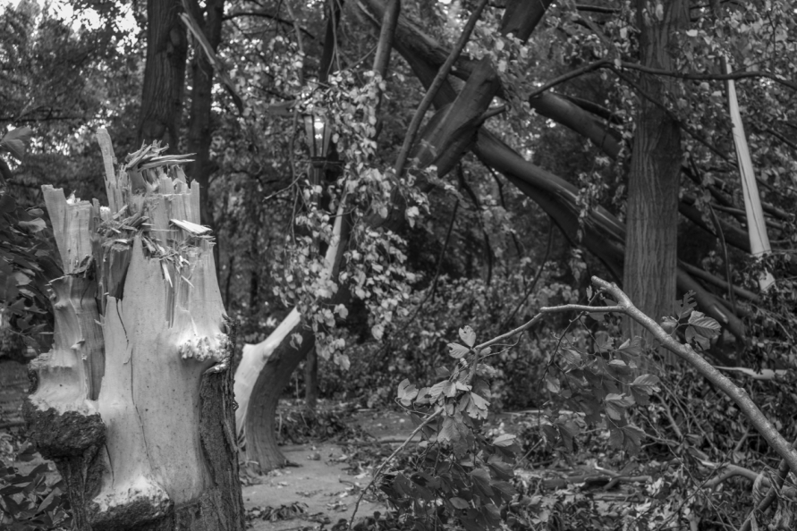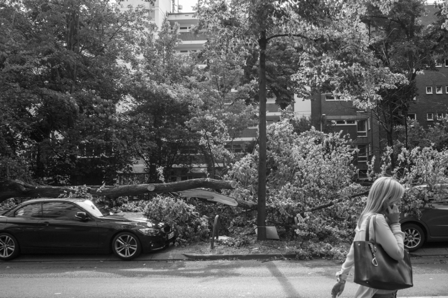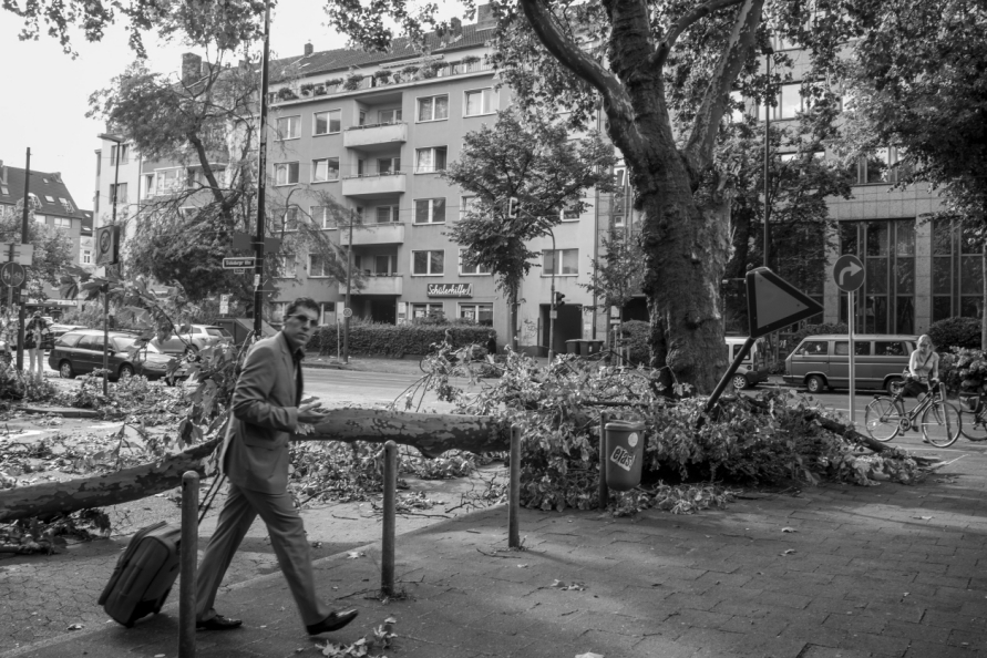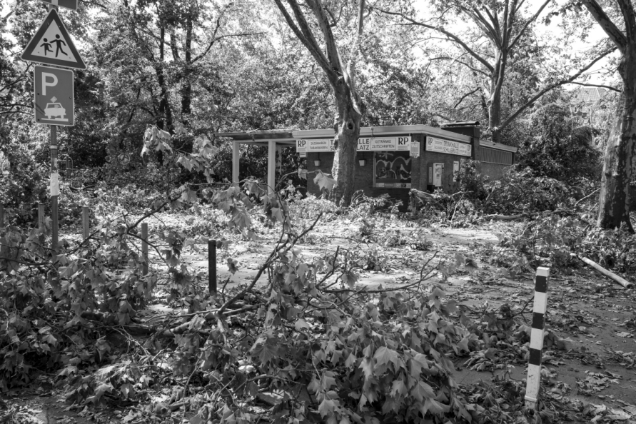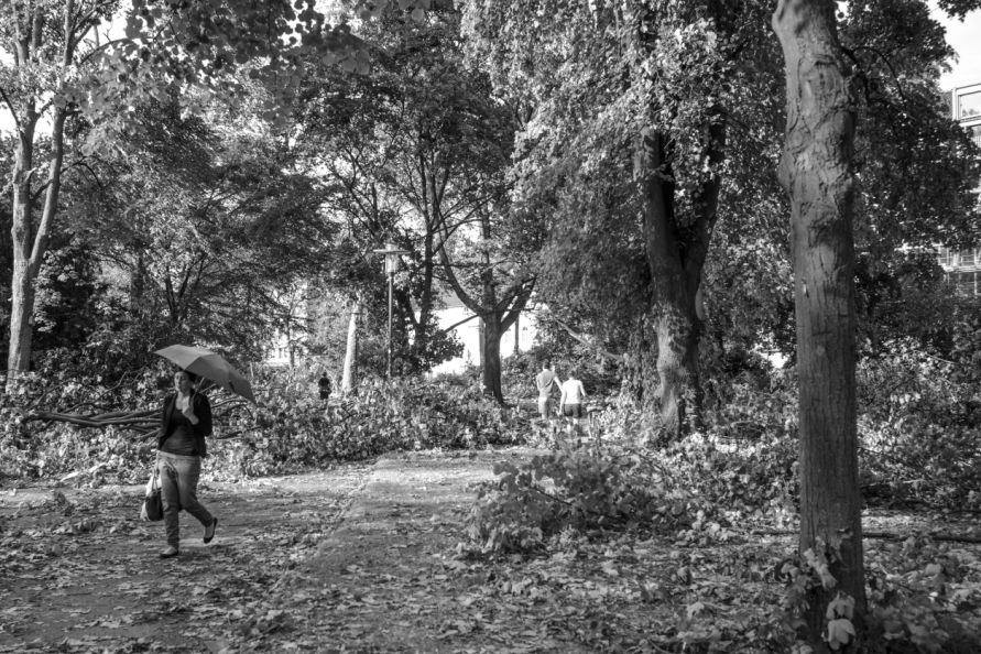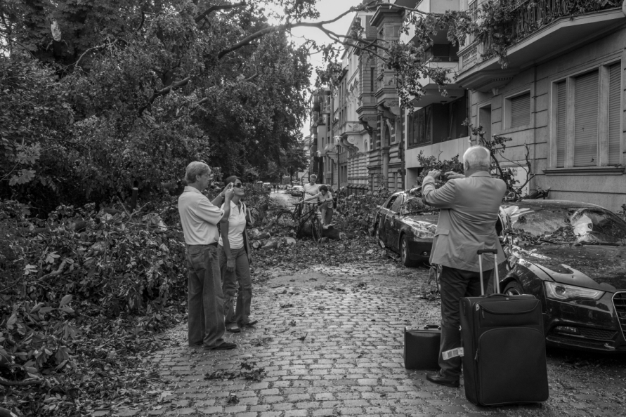 Die Stimmung in den Tagen danach war so ungewöhnlich, das Anké Hunscha sich aufmachte um dieses bizarr verwüstete Stadtbild in ihrer Sprachlosigkeit fotografisch festzuhalten. Besonders faszinierend und berührend empfand sie dabei, wie unterschiedlich die zufälligen Menschen in ihren Fotos sich der Ausnahmesituation stellten, wie sie sich dabei dem Ereignis näherten, passierten und es verarbeiteten.