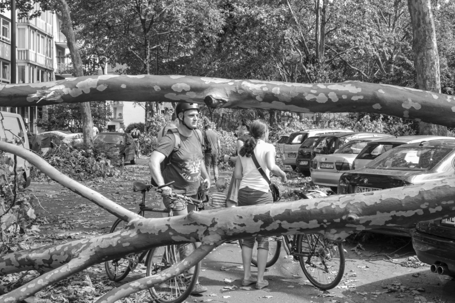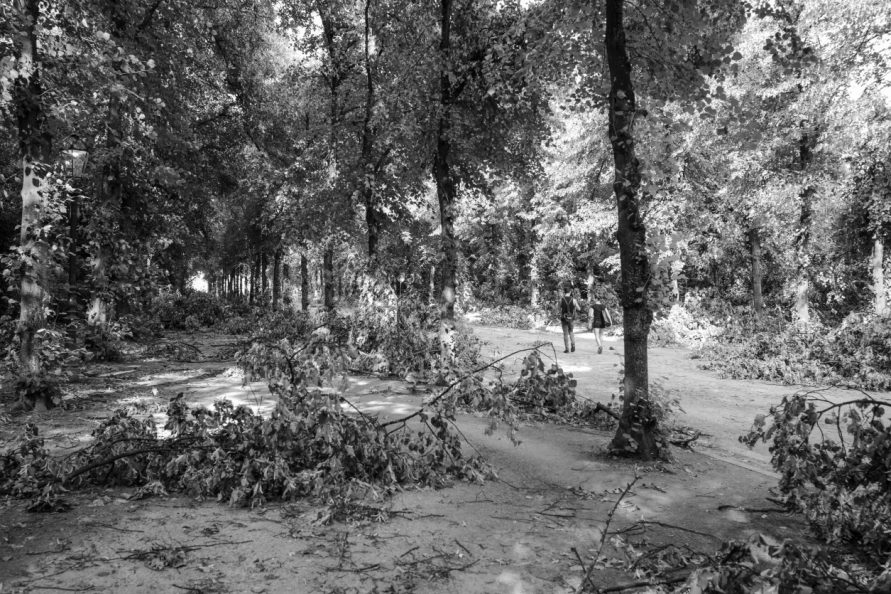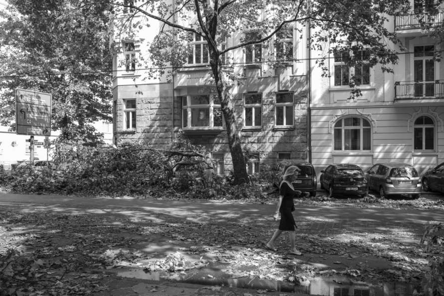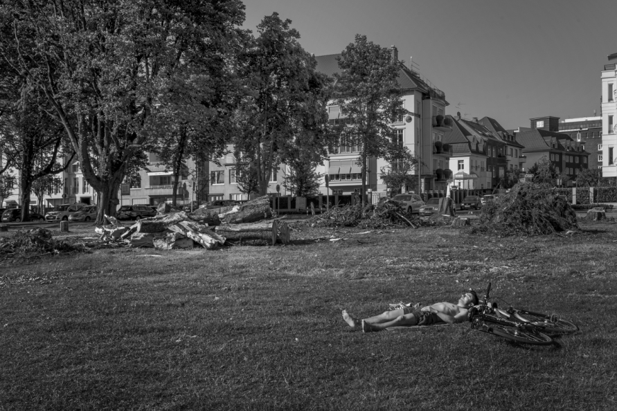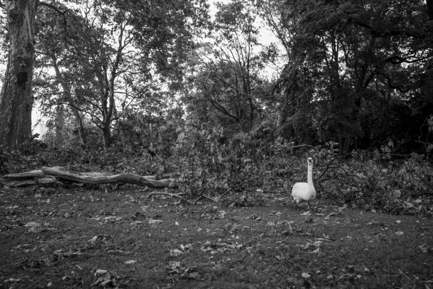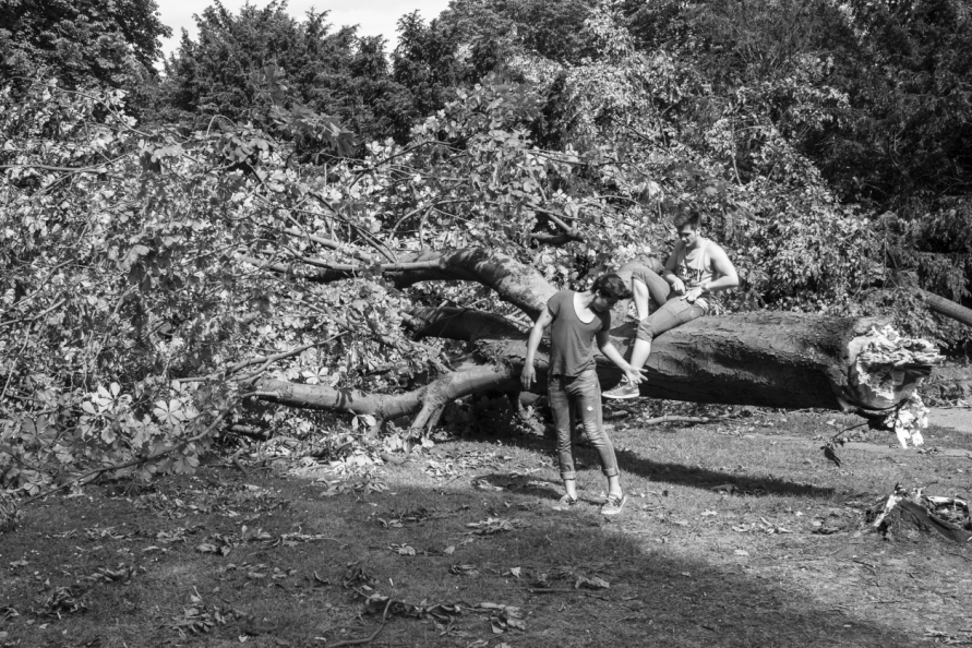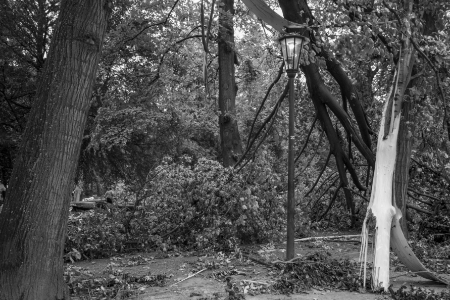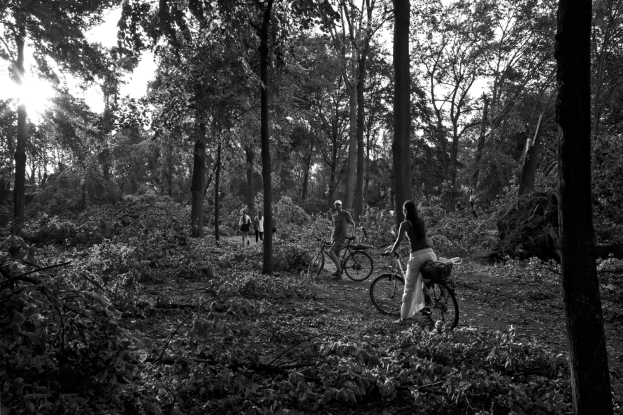Die Stimmung in den Tagen danach war so ungewöhnlich, das Anké Hunscha sich aufmachte um dieses bizarr verwüstete Stadtbild in ihrer Sprachlosigkeit fotografisch festzuhalten. Besonders faszinierend und berührend empfand sie dabei, wie unterschiedlich die zufälligen Menschen in ihren Fotos sich der Ausnahmesituation stellten, wie sie sich dabei dem Ereignis näherten, passierten und es verarbeiteten.