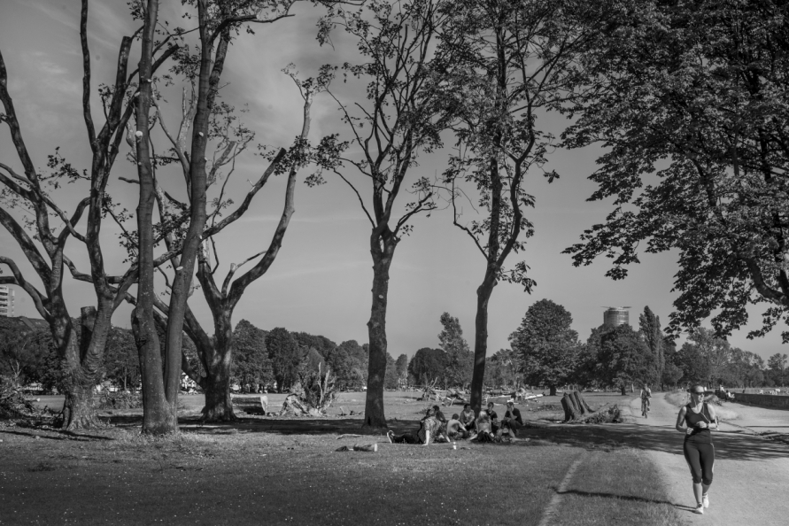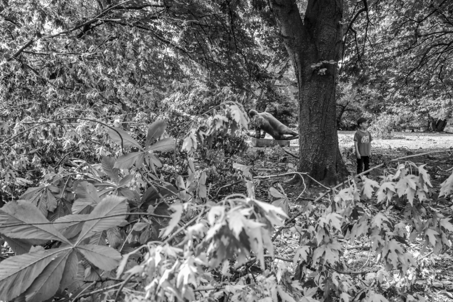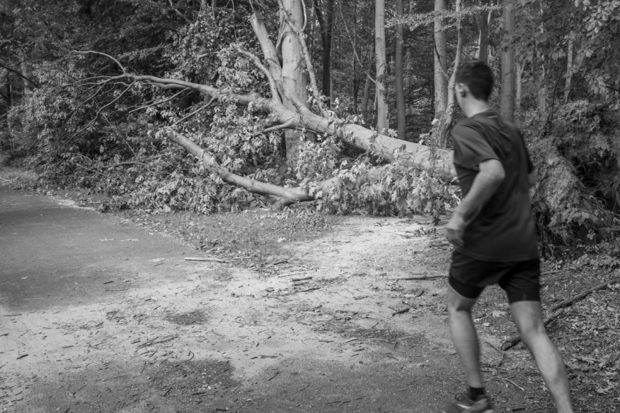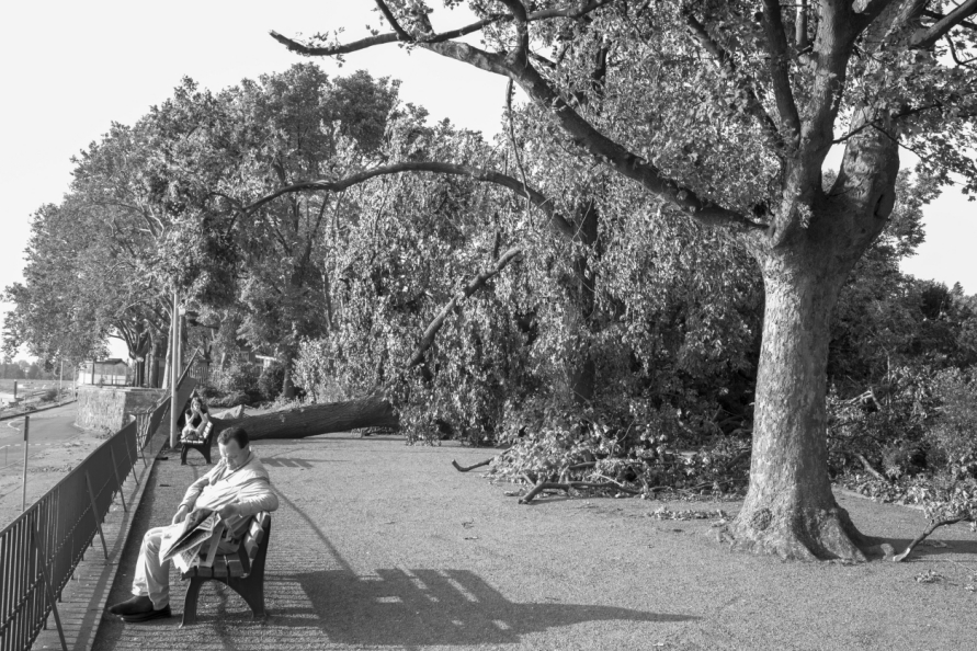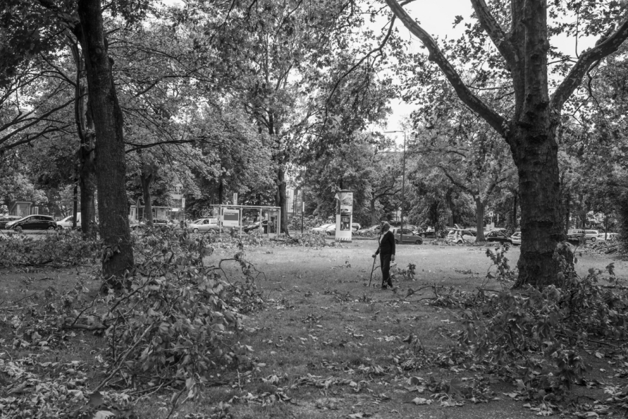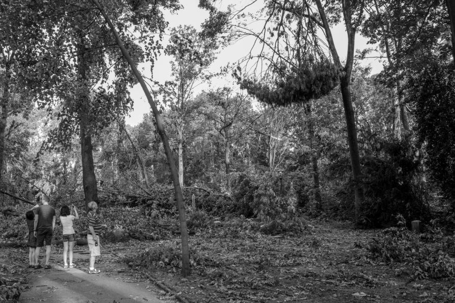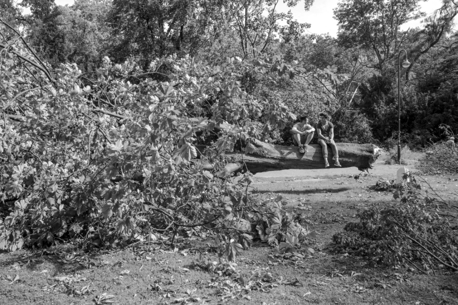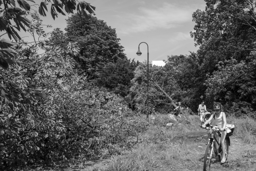 Die Stimmung in den Tagen danach war so ungewöhnlich, das Anké Hunscha sich aufmachte um dieses bizarr verwüstete Stadtbild in ihrer Sprachlosigkeit fotografisch festzuhalten. Besonders faszinierend und berührend empfand sie dabei, wie unterschiedlich die zufälligen Menschen in ihren Fotos sich der Ausnahmesituation stellten, wie sie sich dabei dem Ereignis näherten, passierten und es verarbeiteten.